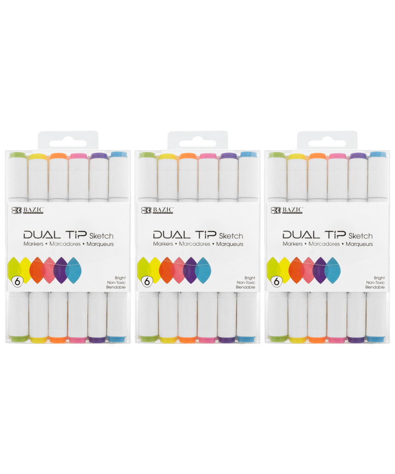 With the double-ended design, you can use 3mm brush tip for sweeping, details, and calligraphic, or the 6.5mm broad strokes chisel tip for quickly color in large areas. Alcohol brush markers are more durable and do not fray easily. *NOTE: Alcohol Based Markers like ALL other brand alcohol markers, will Bleed through regular coloring paper, except very thick paper. Perfect for card making, doodling, and hand-lettering. Excellent smudge-proof and waterproof qualities on most surfaces, work well on ceramics, plastic, or rock. Creative art craft supplies present for teachers, kids, friends, Christmas, Thanksgiving, and Birthdays. High-quality ink blends seamlessly to create beautiful coloring effects. Triangle barrel design provides both a comfortable grip and conveniently prevents markers from rolling off desks and tables. Ideal for professional art and craft. Each pack includes 6 markers in fluorescent colors. Sold as 3 packs for a total of 18 markers.
