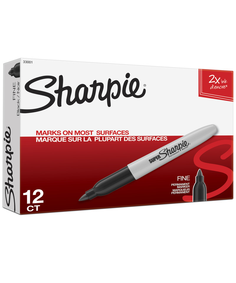 Dull and boring fades away--but bold and brave lives on. That's the motto of Sharpie Permanent Markers. Made to write on, stand out on, and stay on practically any surface, it's born for unique, unruly, courageous, outrageous self-expression that always leaves a bold mark. With a super-large ink supply, Sharpie Super Permanent Markers have 2x the ink of a Sharpie Fine Permanent Marker for long-lasting self expression. Each box includes 12 markers.