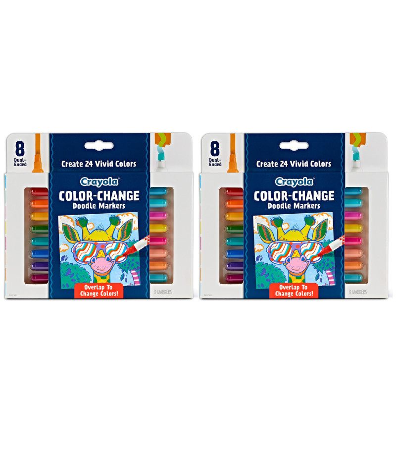 Play with color when you bring home Crayola Color Change Doodle Markers! To get started, simply layer one color on top of another and watch as an entirely new third color emerges. It's a fun way to create with color, whether you are filling in coloring books or just doodling. For a bundled gift idea for teens and adults, pair this unique marker set with a coloring book or construction paper. Everyone loves a colorful surprise, and these markers deliver on that every time! Additional Doodle Marker and Colored pencil sets are available now (sold separately), try them all! Each pack includes 8 markers, which offer 24 colors in total. Sold as 2 packs for a total of 16 markers.