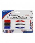 These are assorted colored dry-erase markers, with triangle shape barrels to prevent rolling off the table easily. Comfortable for gripping due to the triangle shape. Germany ink for a great quality solid color with low odor. These chisel tip markers can create thick and thin lines for detailed works of art. Allows you to customize your written message to fit your needs. Ergonomic design to prevent the marker from rolling off the desk. Low-odor ink is safe for indoor environments. Ink pigment is made with an easy-wipe formula that'll leave your whiteboard looking as good as new. Smear-proof and quick-drying makes it safe for all uses. Perfect for all uses: teachers, students at home, work, and school. Marks are viewable across a class or conference room. Dry Fast and residue-free wiping of whiteboards can be used on glass and most non-porous dry-erase surfaces. Erase completely with a cloth or board eraser. Each pack includes 3 dry-erase markers in assorted colors.