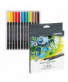 Lyra artist supplies are superior products for serious artists of all ages. Lyra Aqua Brush Duo is a pen with a brush-on effect especially made for artists, designers, and hobby painters. The unique tips are extremely stable. There is a broad tip on one side which allows brush-like techniques. Fine lines and drawings are easy to do with the tip on the other side of the Aqua Brush Duo. With this brush pen pictures and layouts can be done to perfection. The ink is water based and AP certified non-toxic. Draw, sketch design and empower your creativity with artist products from Lyra. The 12-color set includes Light Yellow, Lemon Yellow, Orange, Pale Geranium Lake, Deep Carmine, Light Blue, Prussian Blue, Permanent Green, Yellow Still de Grain, Van Dyck Brown, Venetian Red, Black. Content may vary. ACMI Certified, Conforms to ASTM D-4236.