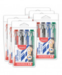 - Each 4-pack includes Black, Blue, Red & Green and comes in a reusable carrying case