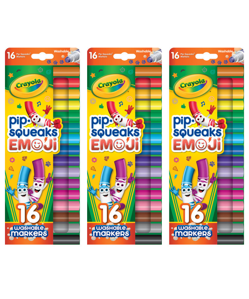 - PIPSQUEAKS WASHABLE MARKERS: Sold as 3 packs for a total of 48 stampers, each individual pack includes 16 Crayola Pip Squeaks Stamper Markers featuring fun emotion icon stamps.