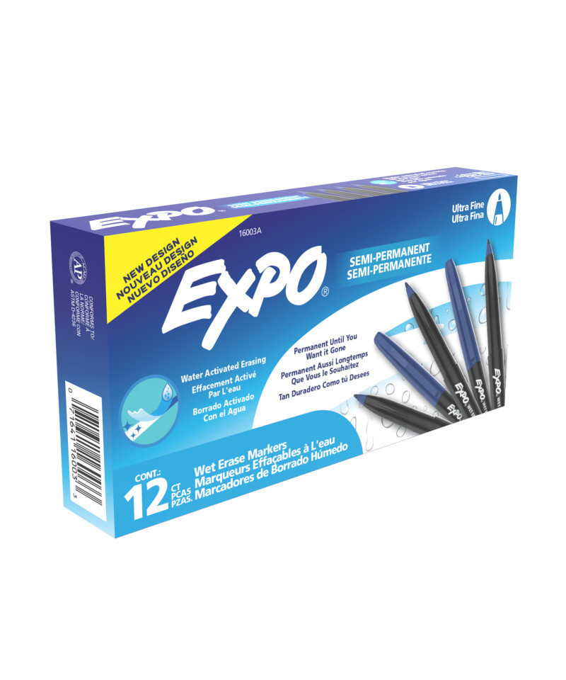 Label, plan, and organize with ease with EXPO Wet Erase Markers. Depend on EXPO wet erase markers for writing or drawing on whiteboards, hard plastic, laminated sheets, and other nonporous surfaces. These EXPO markers feature ink that easily wipes off with a damp cloth. Available in a variety of vibrant colors, the fine-tip markers leave fine detailed lines even in small spaces.