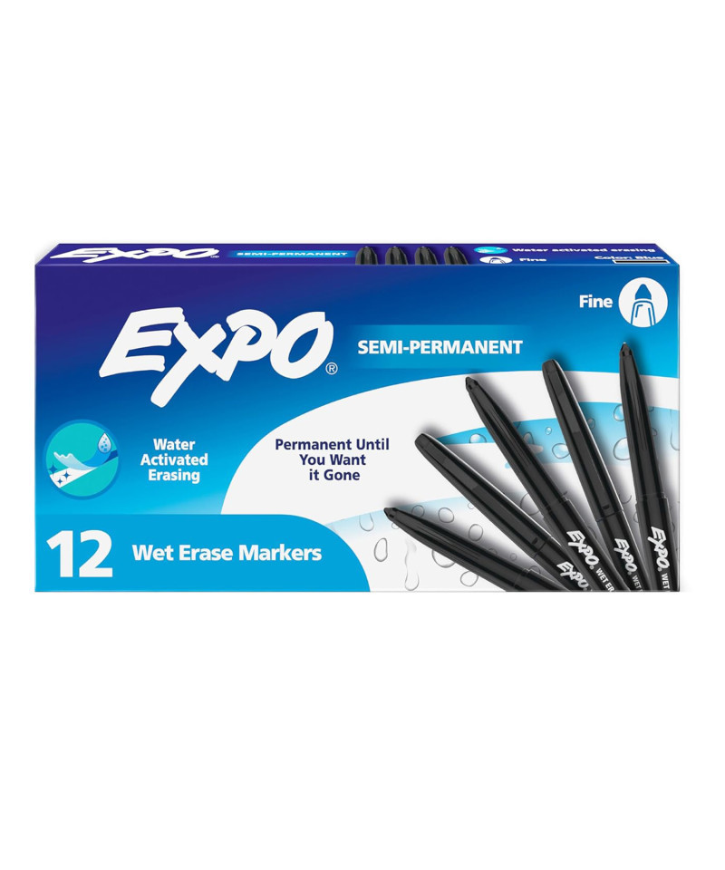 • EXPO Wet Erase markers that easily wipe off with a damp cloth