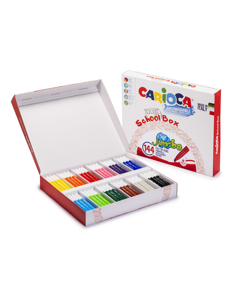 The Carioca Jumbo Maxi Tip Felt Tip Pens School Box – 144 Pieces is a must-have for classrooms, art programs, and group projects. These super washable markers feature a bold 6 mm maxi tip, perfect for vibrant, eye-catching drawings and writing. The maxi octagonal body ensures a comfortable and secure grip, while ventilated caps enhance safety and prevent the markers from drying out. Made in Italy, this class pack of 144 pens delivers consistent, high-quality performance, making it ideal for collaborative lessons and creative classroom activities.