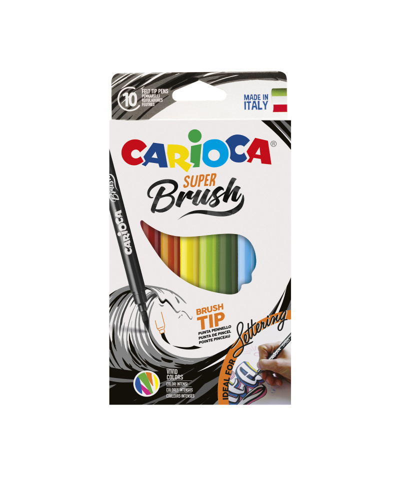 The Carioca Super Brush Felt Tip Pens – 10 Pieces are designed for artists and hobbyists who love vibrant, expressive creations. Each marker features a soft, flexible brush tip, perfect for calligraphy, lettering, and dynamic illustrations. The super bright, washable ink allows for bold, colorful designs that are easy to clean up. With a convenient box of 10 pens, this set provides a wide palette of colors to inspire creativity in any project.
