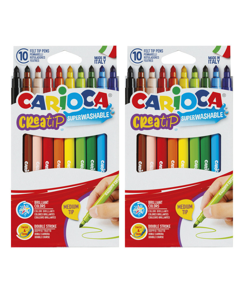 The Carioca Creatip Medium Tip Felt Tip Pens – 10 Pieces are a versatile set of classic broad-line markers designed for both creative projects and everyday school use. Featuring a medium conical tip, they allow artists to switch effortlessly between precise details and wide strokes, making them perfect for coloring, outlining, and shading. Filled with super washable ink, they clean easily from skin and most fabrics. Built with a blocked tip for durability and a ventilated cap for safety, these bold, long-lasting markers are safe, nontoxic, and made in Italy, ensuring top-quality performance for all your artistic needs. Each pack includes 10 markers. Sold as 2 packs for a total of 20 markers.