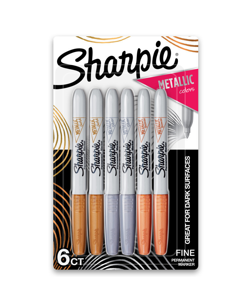 Never dull and always brilliant, Sharpie Metallic Fine Point Permanent Markers leave glimmering marks nearly everywhere your imagination dares to wander. Putting pale imitations to shame, Sharpie Metallic Markers lay down a pure, brilliant metallic sheen that boldly stands out, particularly on dark surfaces. Each Sharpie Metallic Fine Point Marker is filled with quick-drying, fade- and water-resistant ink that's designed to make magnificent marks on almost any surface. Add weight to your words with your choice of metallic finishes: gleaming gold, striking silver, and brassy bronze.