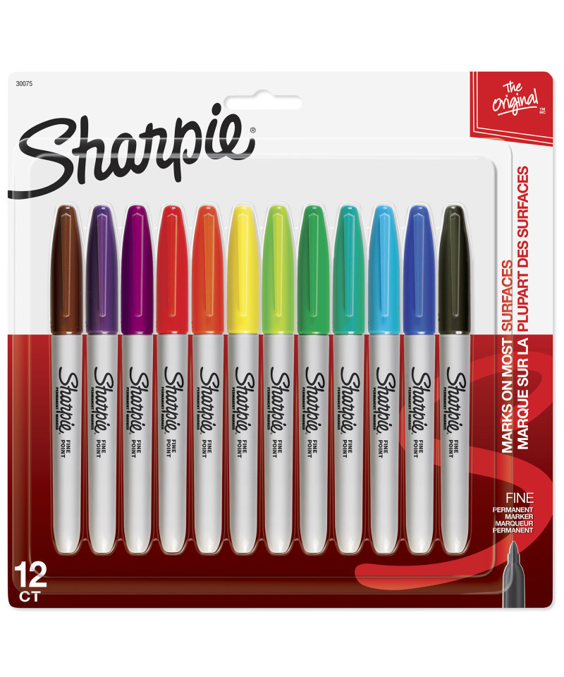 Bold to the max and permanent to the core, Sharpie Permanent Markers inspire you to transform ordinary surfaces into passionately creative statements. Made to write practically everywhere, vivid Sharpie markers eliminate dull and boring. The original permanent marker, Sharpie has iconic ink that dries quickly and resists both water and fading. While pale imitations wither away, Sharpie markers make creations that endure. Featuring a bold fine point built for jaw-dropping marks, Sharpie Permanent Markers ignite courageous self-expression. Pack of 12 in assorted colors.