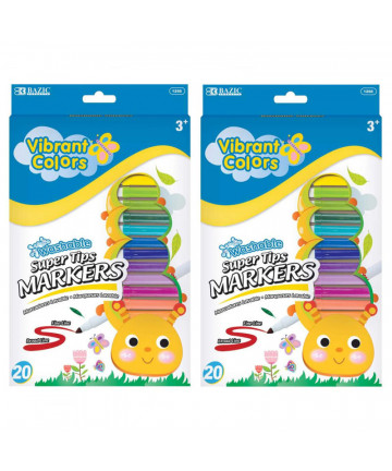 - 12 bright colors: Purple, dark blue, light blue, dark green, light green, yellow, orange, pink, red, pink, brown, black