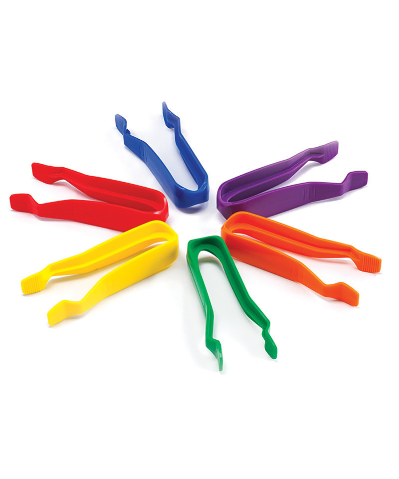 12 JUMBO TWEEZERS -- This set includes 12 tweezers in 6 different colors: blue, green, red, yellow, orange and purple. These colors perfectly accommodate counting and sorting kits!