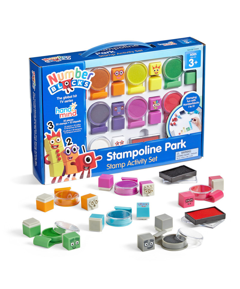 Use the stamps and ink to make your favorite Numberblocks from One to Ten and create your own Stampoline Park adventures. Stampoline Park is a popular Numberblocks episode! Numberblocks are the friendly characters from the global hit TV math series that's available in the U.S. on Netflix and YouTube. Each of the stamps in the set include completely washable ink and can be reused time and time again.