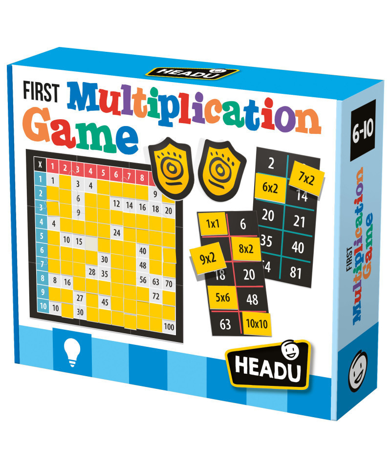 Draw a card, read the multiplication and find the corresponding result. But be warned, sometimes you will need to be faster than your opponent! With this fantastic game of tables, you will train your calculation skills and learn the multiplication tables! Includes 10 lotto cards, 100 multiplication cards, 100 points counters, 1 large Pythagorean table, 1 multiplication game board, 10 "save-mistake tokens", 3 player tokens, and instructions.