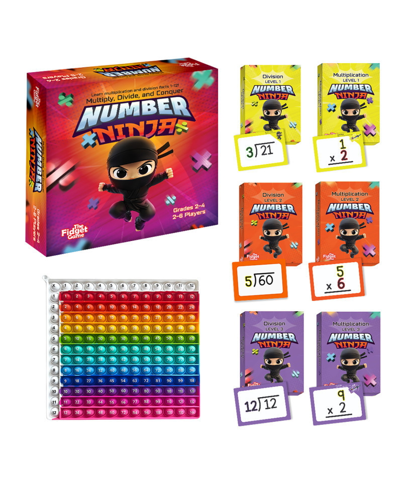 - MULTISENSORY MATH PLAY: Built around a dynamic Multiply & Divide Fidget Mat and over 300 flashcards, Number Ninja engages visual and tactile learners—making math fun, memorable, and hands-on.