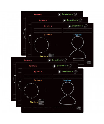 Our new numbers and shapes activity playmat is the perfect way for a child to practice again and again! This product gives your child endless opportunities to keep tracing digits 0 to 9 plus 11 different shapes on the other side. Learn numbers and shapes with continuous practice! Write directly on the playmats, and remove with a damp cloth and start over and over again. Playmat is 12" x 17". Reusable playmats are compatible with Wonder Stix. Mess free & easy to clean. Sold as a pack of 6 playmats.