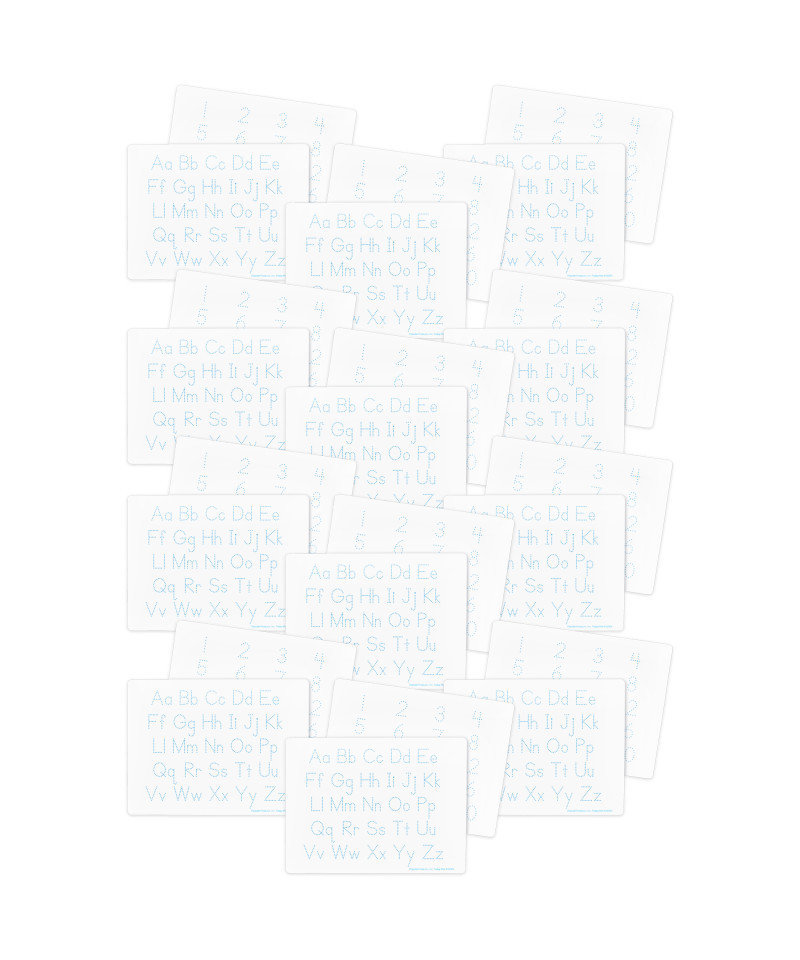 Enhance your classroom learning experience with our dry erase learning mats. The two-sided Learning Letters and Numbers Mats offer a dynamic surface for early learners. These 9" x 12" mats feature vibrant dotted blue letters on one side and dotted numbers 1-20 on the reverse. The mats boast a high-quality write-and-wipe surface with smooth rounded edges. The set of 24 mats provides an economical and reusable solution, making them the perfect alternative to traditional hardbacked boards.