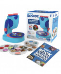 Introductory microscopic discovery observation goes next level with the GeoSafari Jr. Kidscope! Young scientists get hands-on experience with a microscope and 15 pre-printed slides they can mount, rotate, and view at a 3x magnification that provides a wide field of vision, perfect for this age. Kids simply select a slide, place it on the rotating dial stage, and use the easy-focus knob to adjust to their perfect field of vision. Then, turn on the LED light to illuminate the image and look through the double eyepiece (no need to close one eye!) to see it up close. With 60 images to choose from, the fun—and learning!—never ends! Requires 3 AAA batteries (not included).