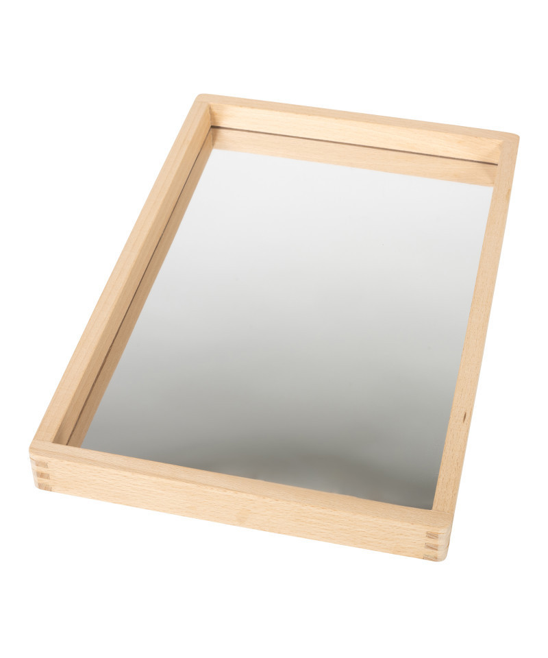 This beechwood tray features a 2 mm acrylic mirror base. It provides a sturdy, portable platform for children to observe reflection. Examine objects, faces, environments and more. The tray has 0.8" lips to keep activities contained. Inspect objects from different angles and create small worlds. Add reflection to any STEM or sensory activity station. This mirror is durable. It's built to last for years of classroom or center use. And its lightweight, compact design fits perfectly on shelves. Suitable for all ages. Size: 14.2"L x 9.4"W x 1.2"H.