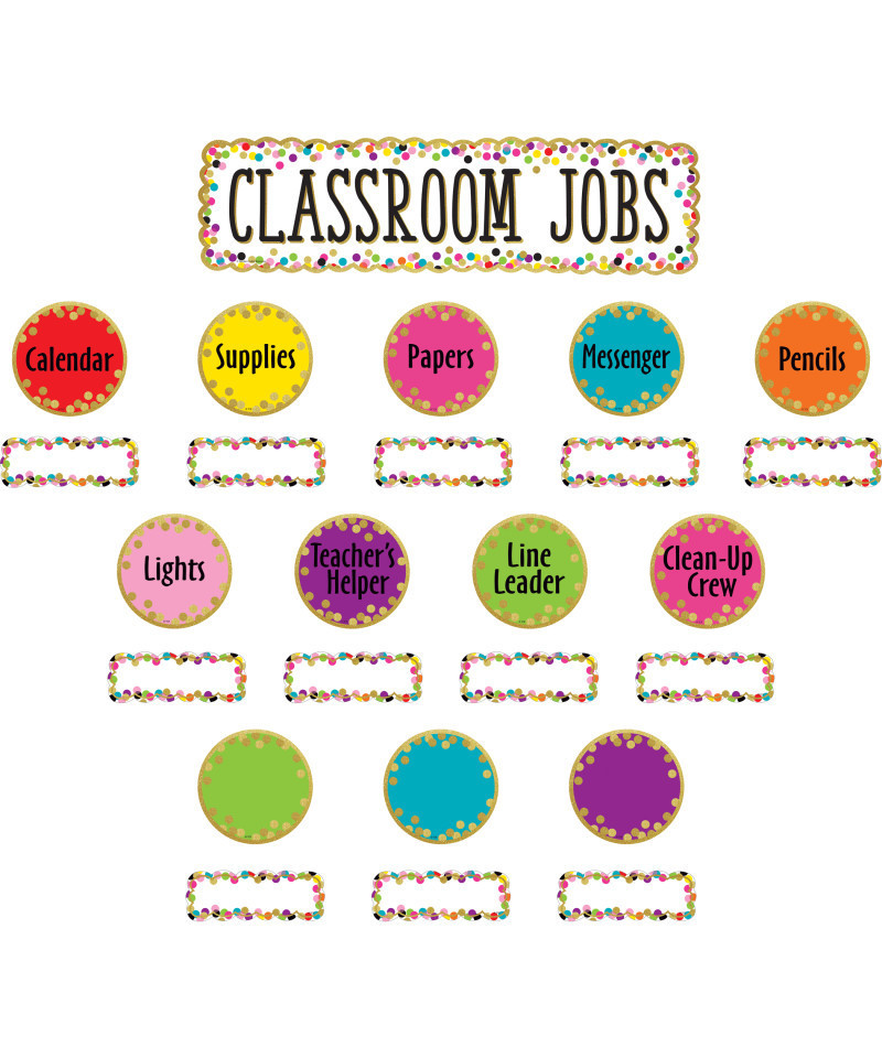 - Add a festive touch to your classroom with this colorful classroom jobs mini bulletin board.