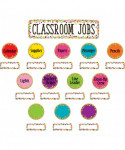 Add a festive touch to your classroom with this colorful classroom jobs mini bulletin board. The set includes titles for Lights, Clean-Up Crew, Calendar, Line Leader, Messenger, Papers, Pencils, Teacher's Helper, and Supplies, plus blank pieces that you can customize. Header piece measures 20-5/8" x 5-3/4". 49 total pieces.