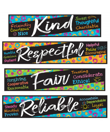 Featuring vibrant colors and well-loved figures from the imagination of Eric Carle, this bulletin board set addresses 10 essential traits including kindness, honesty, generosity, and more. Make sure to view other Eric Carle products to create a unified classroom theme.