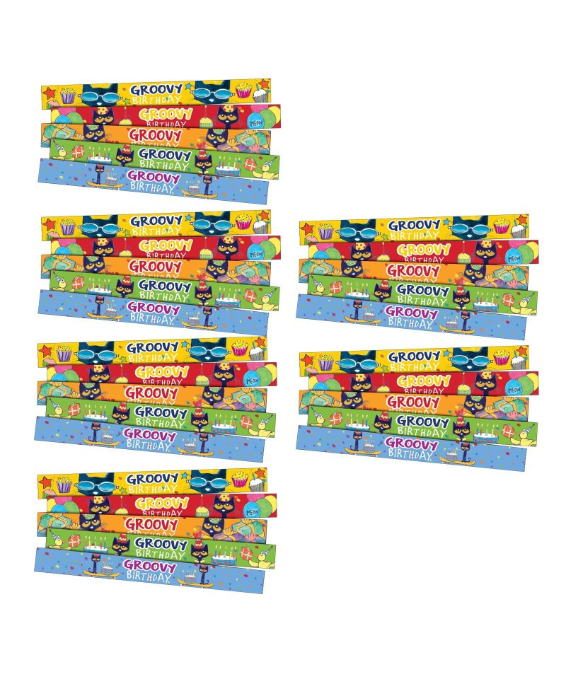 Slap bracelets fit most wrist sizes and are a fun way to reward good behavior or build awareness for special events. Stuff these in birthday goody bags for student's birthdays! Bracelets measure 9-1/2" x 1". Each pack includes 10 bracelets, 2 each of 5 different designs. Sold as 6 packs for a total of 60 bracelets.