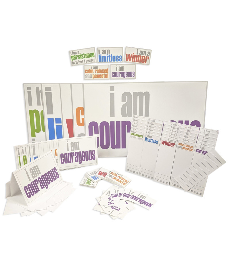 This Inspired Minds Ultra Booster Set consists of 150 items with statements intentionally printed simple, yet colorful, to offer an impactful and creative way to help gain Hopefulness and build character to last a lifetime. Surround yourself with Inspired Minds affirmation products daily to inspire positive thoughts, actions, and attitudes, which will lead into finding true happiness and ultimate success. Using these powerful products together will immediately enhance efforts on building a healthy mind set. Set consists of 5 – 11" x 17" Posters, 5 – 2" x 3-1/2" Magnets, 100 – 2" x 3" Hand off Notes, 30 – 2" x 6" Double-Sided Page Keepers Bookmarks, 10 – 5-1/2" x 4-1/4" Note Cards with Envelopes.