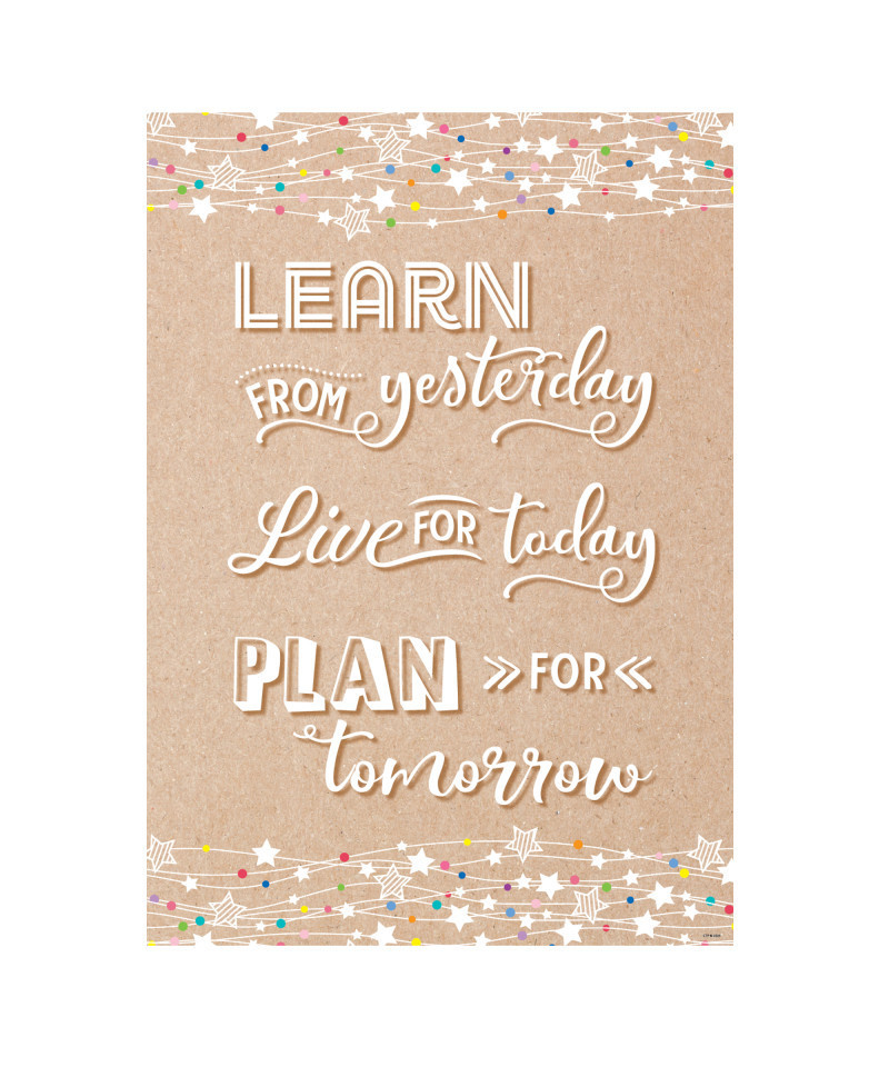 Motivate and educate your students with the powerful messages on this stylish poster. This poster features a simple message that will help anyone achieve success in life: "Learn from yesterday. Live for today. Plan for tomorrow." Measures 13-3/8" x 19".