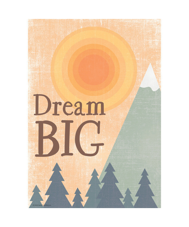 Inspire and motivate kids of all ages with this positive message against a mountain themed background. Brightens any classroom! Measures 13-3/8" x 19".