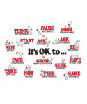 - What's Included – 42-piece set includes 4 panels with: a 4-piece "It's OK to.." header, 15 phrase-pieces, and 22 die-cut characters