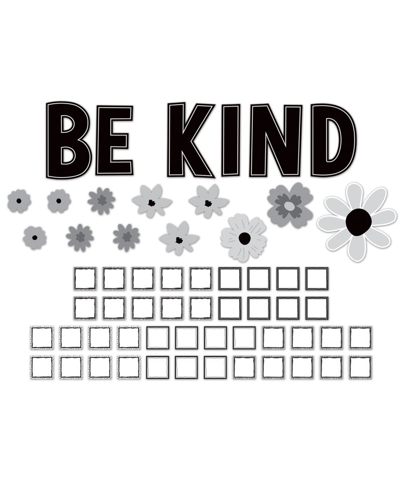 With its intricate floral design in timeless monochrome, this bulletin board offers versatility that adapts to your needs. You can use the square note cards to pre-write uplifting messages for those in need of a boost, encourage students to craft their own notes of kindness to share, or set up a dynamic exchange station where students can both take and give these heartwarming tokens of goodwill. Tallest BE KIND letter is about 13-1/2" high. 12 flowers range from about 4" to 14" in diameter. 42 square notes are 4" x 4". 60 total pieces.