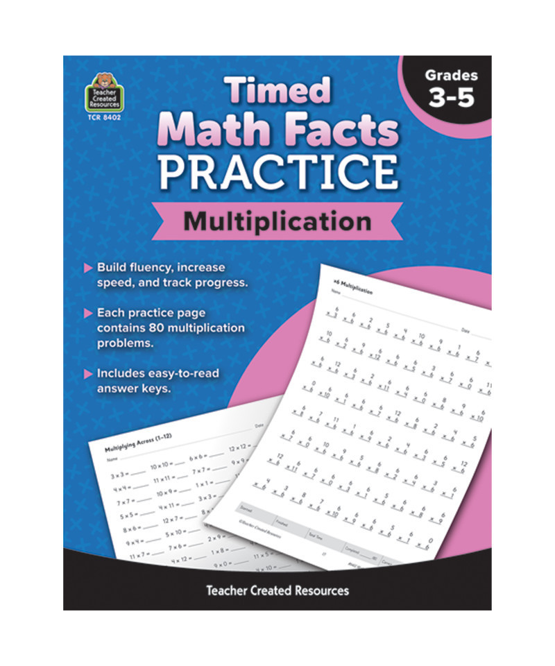 Build fluency, increase speed, and track progress with this timed math facts practice. This book will help students gain fluency, flexibility, confidence, and speed in solving multiplication problems, and each unique page offers another opportunity to practice and improve. Tracking sheets make monitoring progress easy, and easy-to-check answer keys are included for every practice page. 64 pages.