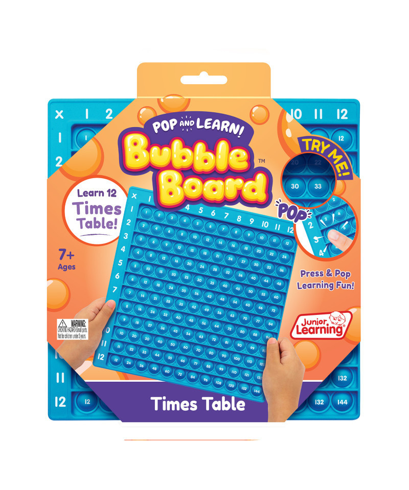 Pop bubbles on the board to learn times tables 1 to 12. Factors1 to 12 are represented on both the vertical and horizontal axes with the correct product presented in the corresponding bubble. Pop bubbles as you practice and solve the equation. Bubbles on the reserve side are blank and can be used for creating visual multiplication arrays.
