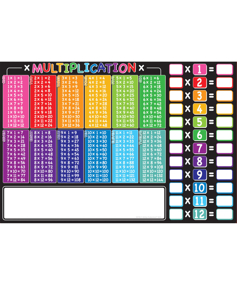 Ashley Productions® Placemat Studio™ Smart Poly® Multiplication Tables Learning Placemat, 13" x 19", Single Sided, Pack of 10