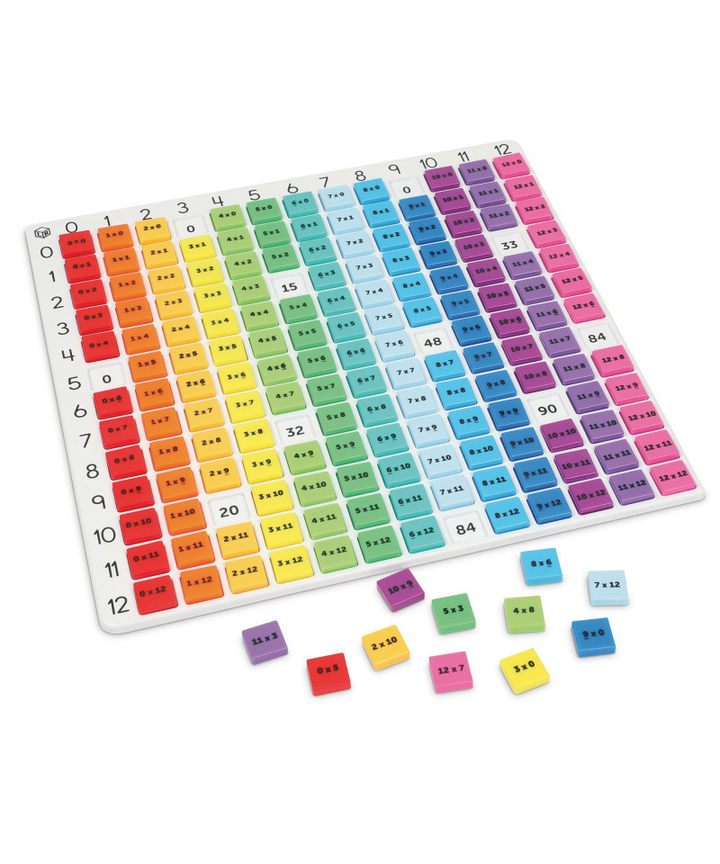The classic multiplication chart—now in fresh, new colors and made for busy hands! Kids can practice their facts from 0x0 to 12x12 with tiles color-coded within each column for easy tracking and customization. The included storage bag makes organization simple and provides opportunities for on-the-go math fun. Age 7+ | Grade 2+