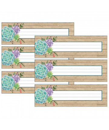 These Modern Cursive nameplates include a name line; modern cursive alphabet (uppercase and lowercase) with stroke lines; 0-12 multiplication table; place value chart with words, fractions, and numerals; fraction and decimal equivalents; and standard and metric rulers. Each nameplate is 18" x 4". Each pack includes 36 nameplates. Sold as 3 packs for a total of 108 nameplates.