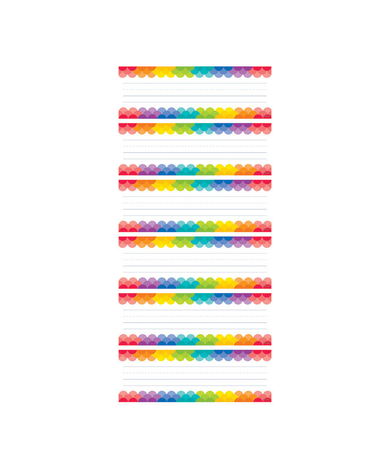 These colorful Rainbow Scallops name plates will accent just about any classroom theme. Name plates can be used to personalize student desks, cubbies, seats at the table, take-home bags, classroom cabinets, folders, library book boxes and more! Student name plates are a must-have for any classroom. Name plates measure 9.5" x 3.25". Each pack includes 36 name plates. Sold as 6 packs for a total of 216 name plates.