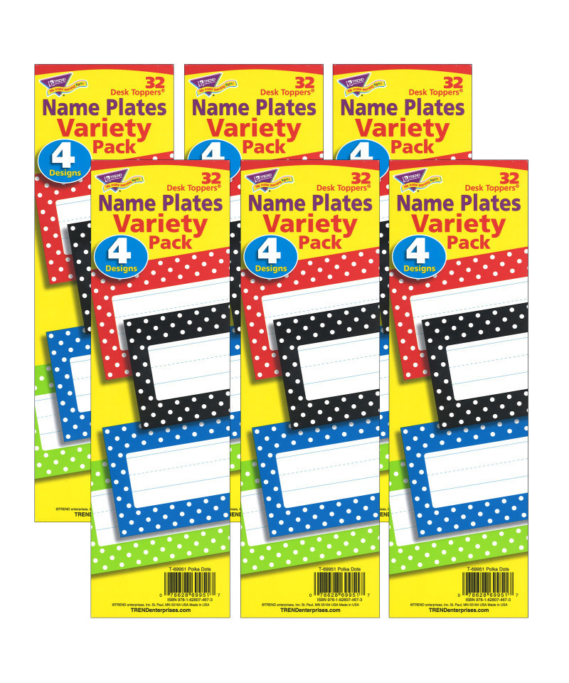 TREND Polka Dots Desk Toppers® Name Plates Variety Pack, 32 Per Pack, 6 Packs