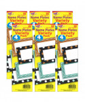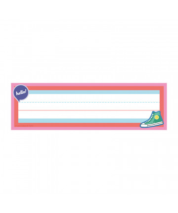 Four designs per pack makes it easy to group students, determine line order, and more. Invite students to select their favorites to label their desks and lockers. So many uses! Guidelines included for printing and writing practice. Measures 9 1/2" x 2 7/8". Each pack includes 32 name plates in 4 designs. Sold as 6 packs for a total of 216 name plates.