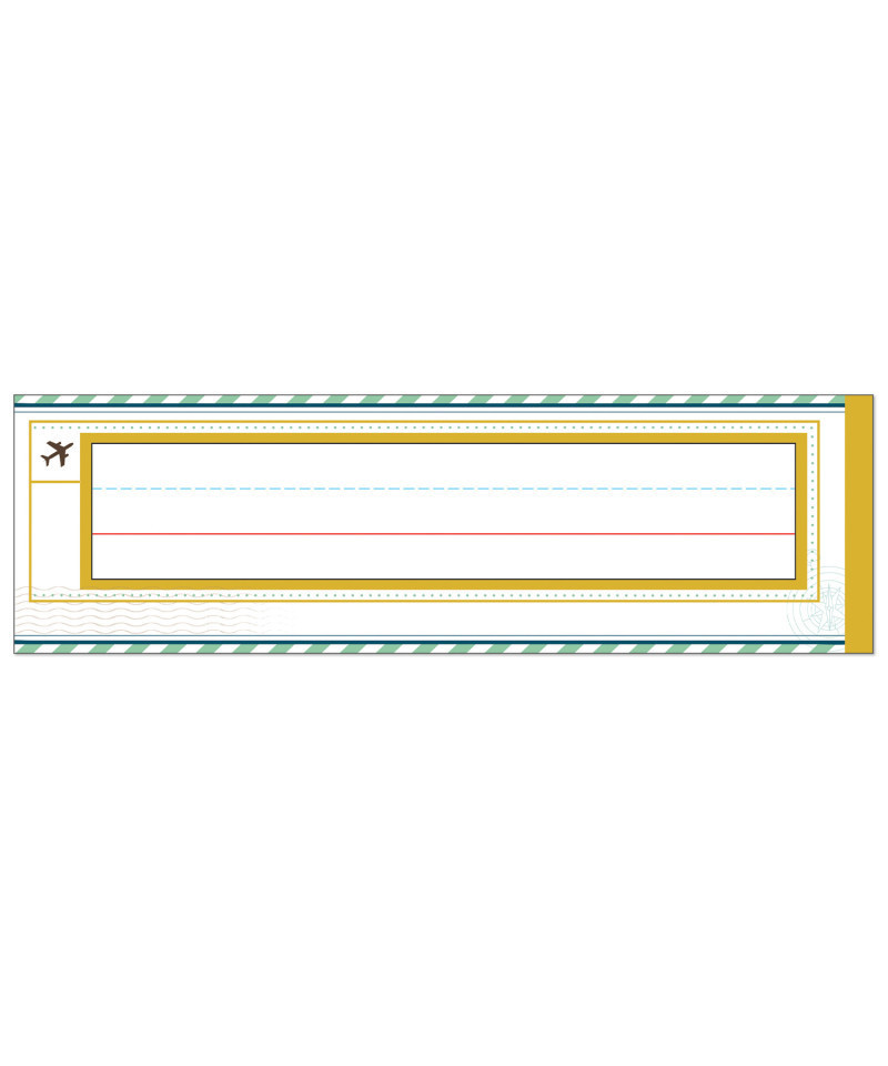 Carson Dellosa's Let's Explore Nameplates provide an easy way to label and organize for a successful school year. Each nameplate in this 36-pack measures about 9 1/2 inches x 3 inches to fit on desks, lockers, cubbies, and more with ease. Each student nameplate features an airplane icon and a passport stamp, with ample writing space for students to write their names and personalize each nameplate. These retro nameplates are sure to add a fresh and happy touch to any labels or organizational needs. Education happens everywhere, and Carson Dellosa strives to provide the tools needed to inspire learning everywhere it happens.
