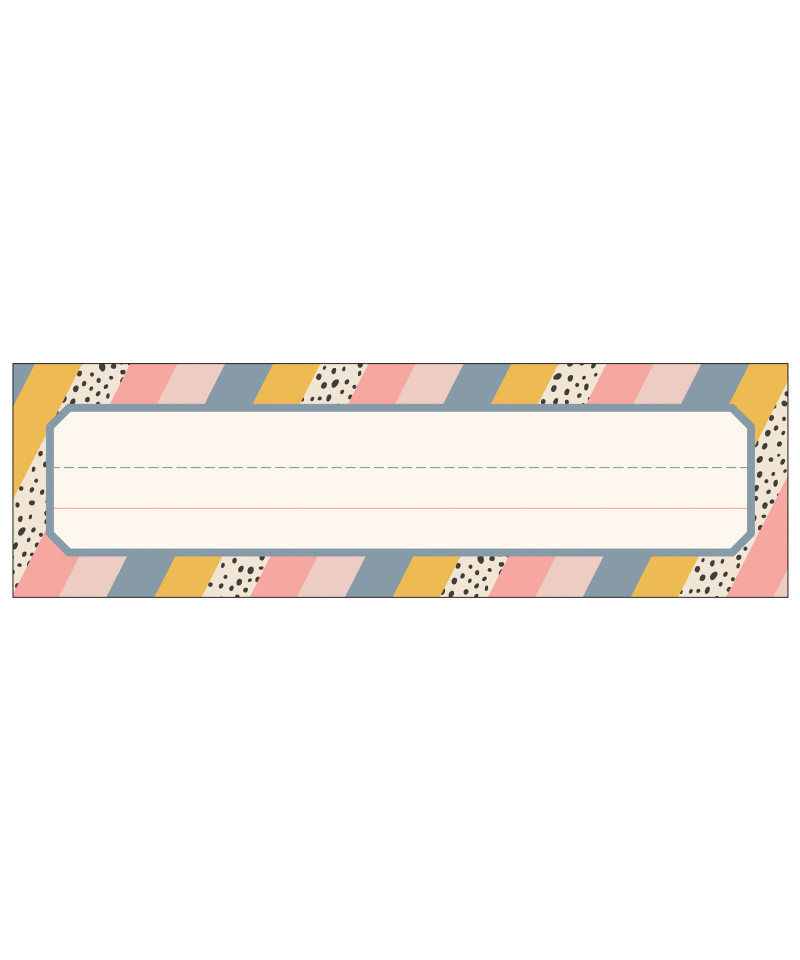 Organize cubbies, lockers, classroom supplies, student desks, and more with boho décor using the Carson Dellosa We Belong Nameplate Set. The nameplate set features 36 nameplates to accommodate an entire classroom and more, each measuring about 9.5" x 2.8". Use each student desk name tag on each student's desk, as a cubby or desk organizer, or as chalkboard labels. You can also use the name tags for classroom and locker décor, classroom storage, or use to label and organize boho classroom décor and office décor. Each desk nameplate has ample writing space for names and features colorful, boho stripes with a black and white leopard print dot design to add boho neutral animal print classroom décor to your school supplies. Classroom organization has never been easier!