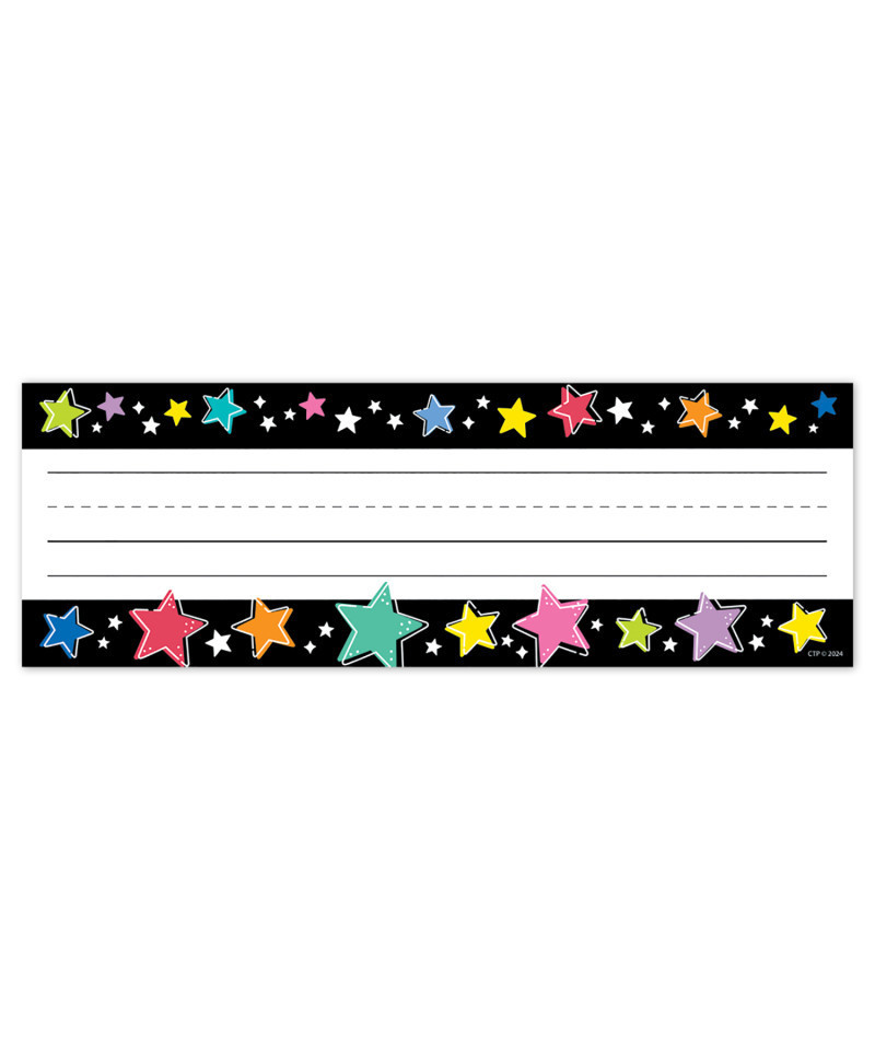 These Colorful Stars on Black Name Plates can be used to personalize student desks, cubbies, seats at the table, take-home bags, classroom cabinets, folders, and more! Student name plates are great for use in classrooms, day care centers, or preschools. Coordinates with Star Bright products. Name plates measure 9-1/2" x 3-1/4". Each pack includes 36 name plates.