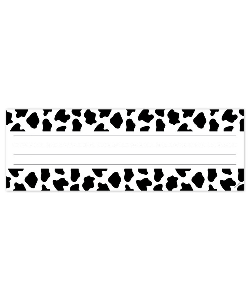 - STYLISH COW PRINT DESIGN – Name plates feature a bold black on white cow print pattern and writing lines to help beginning writers form their letters correctly.