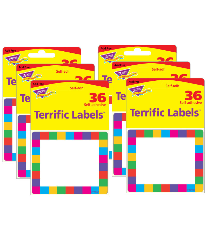 Bright and welcoming labels are acid free and designed for no-smear writing with markers or pens. Perfect for name tags, labels stay put and won't leave residue on clothes! Also great for cubbies, lockers, storage boxes, envelopes, learning centers, and so much more. Self-adhesive. Labels measures 2.5" x 3". Each pack includes 36 labels. Sold as 6 packs for a total of 216 labels.