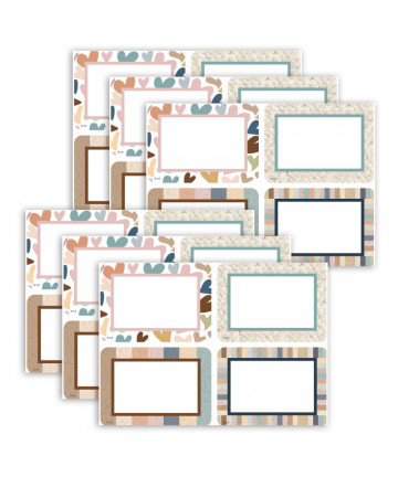 Bright and welcoming labels are designed for no-smear writing with markers or pens.