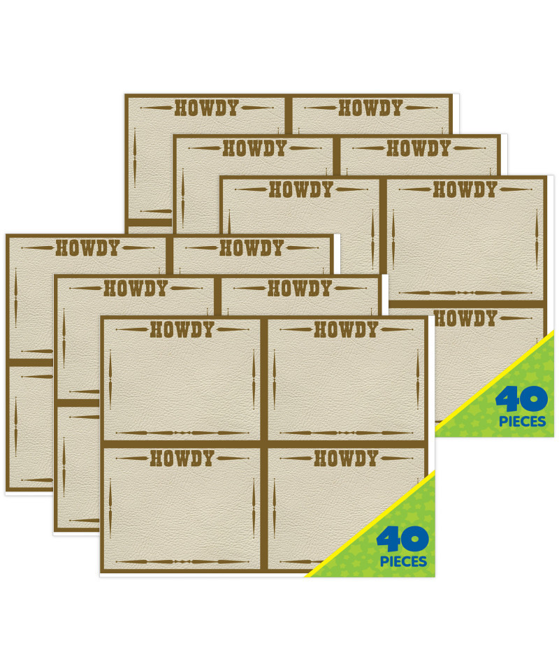 Eureka Name Tags are a helpful tool when getting to know others. Great for Parent/Teacher meetings, field trips, parties, and more. Individual name tags measures 2-7/8" x 2-1/4". Bring the look of the wild wild west to your classroom with the Wild Wild Classroom Collection! Products feature fun western icons with a mix of photo-real imagery and motivational phrases. Sold as 6 packs. Each pack includes 40 name tags.