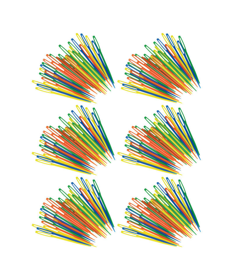 Child friendly lacing needles in an assortment of colors! Easy-to-use. Rounded tip. Measures 3" long. Each pack includes 32 lacing needles. Sold as 6 packs for a total of 192 lacing needles.