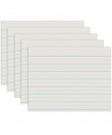 Clean white newsprint paper has light blue ruling on both sides makes great practice paper. Sheets are ruled 1" the long way, and feature a 1/2" dotted midline to serve as a guide for controlled writing. This ruling is recommended for Grade 1. Includes 500 sheets per package. Measures 11" x 8.5". Sold as 5 packs for a total of 2500 sheets.