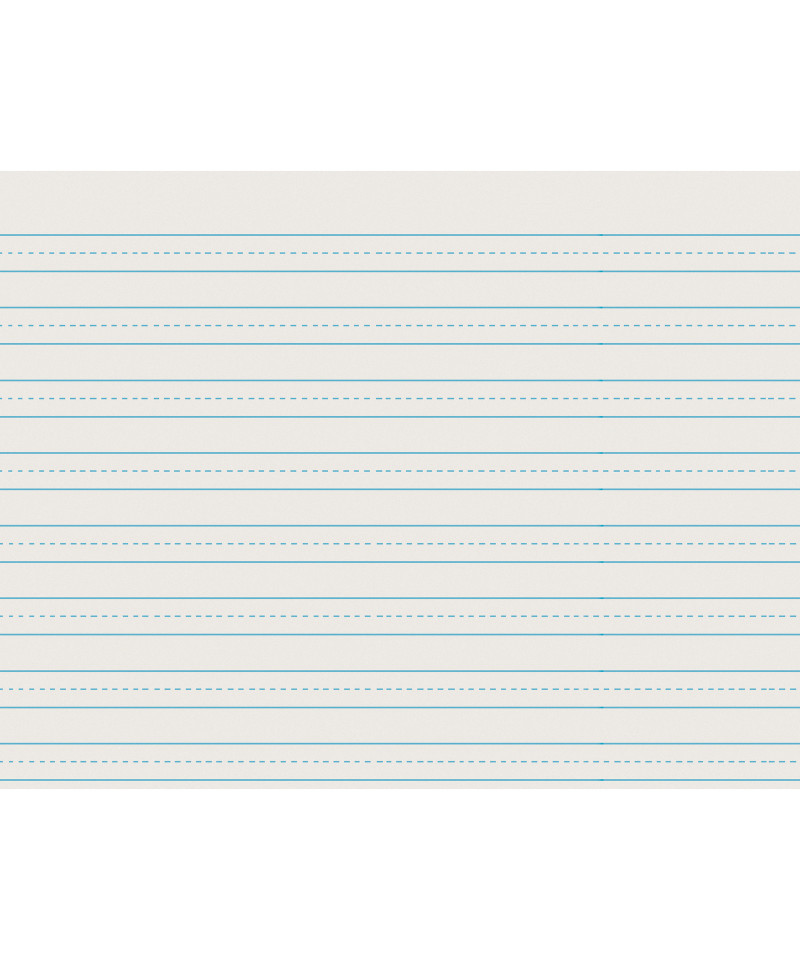 Clean White newsprint has a light blue ruling on both sides. Dotted midline serves as a guide for controlled writing, and skip space allows room for letter descenders, making it great for handwriting practice and tracking students' handwriting progress over time. 1/2" ruled with 1/4" dotted midline and 1/2" skip space. Helps to build a solid foundation for students to write legibly and communicate effectively through writing. Recyclable. Measures 11" x 8-1/2". Each pack includes 500 sheets.